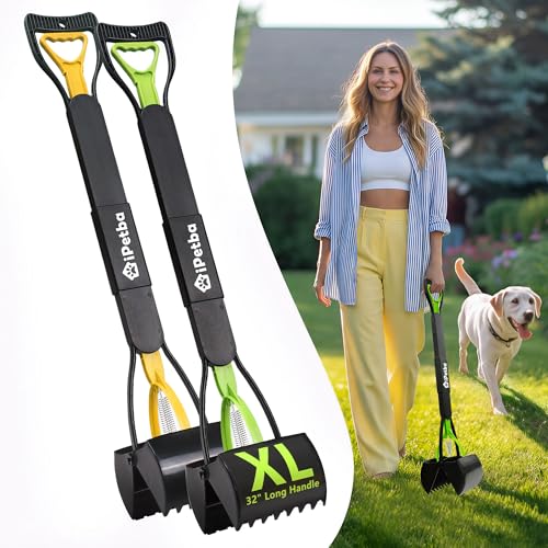 IPETBA 80cm Ramasse Crotte pour Chien Manche Long sans Se Pencher Pelle a Crotte pour Chien Pliable Dog Pooper Scooper pour Gravier, Terre, Herbe, Lot de 2