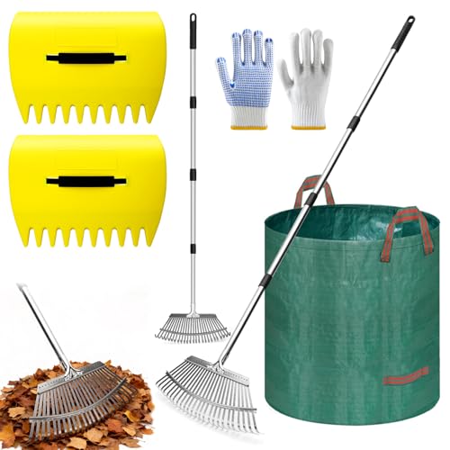 QOTSTEOS Ensemble de ramasse-feuilles pour jardin et cour, râteau à main, grande taille, ramasse-feuilles ou feuilles, herbe coupée et déchets, outil idéal pour enlever les chutes (vert, taille : 34 x