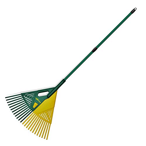 Râteau à herbe pour la cour - Ramasse-feuilles en forme d'éventail avec 14 dents - Balai d'extérieur robuste avec une construction longue et durable - Outil d'aménagement paysager de jardin pour
