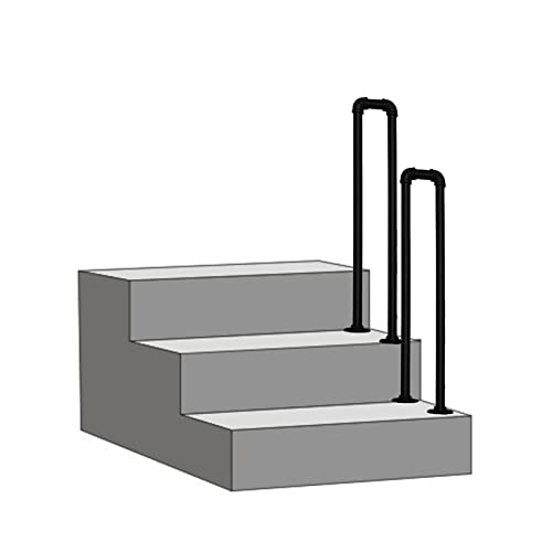 Rambarde en Fer forgé pour escalier | Rambarde pour marches en béton avec kit d'installation | Barre d'appui de sécurité extérieure à Poser au Sol, Noire (Taille : 75 cm (2,5 pi))