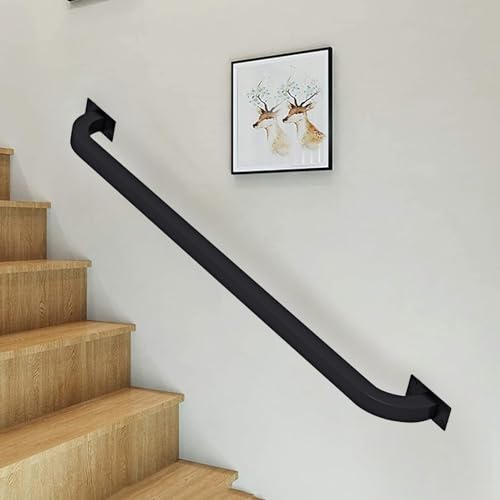 Rambarde d'escalier, Rampe d'escalier en Fer forgé, Main Courante métallique adaptée à Une Marche, Barre d'appui de sécurité extérieure pour escalier au Sol - Tube Rond d'assistance (Taille