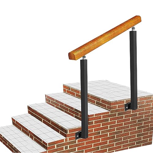 Rambarde pour escalier extérieur, Compatible avec 3 ou 4 marches, Rampe en Bois avec poteaux en Fer forgé Noir, Style transitionnel pour escaliers en béton ou en Bois (Couleur : Hauteur 95