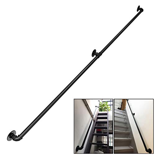 Gorssen 210cm Rampes d'escalier en Fer forgé Noir,Rambarde de sécurité pour Couloir de Vestibule pour Enfant Industriel rétro, Main Courante intérieure et extérieure pour c