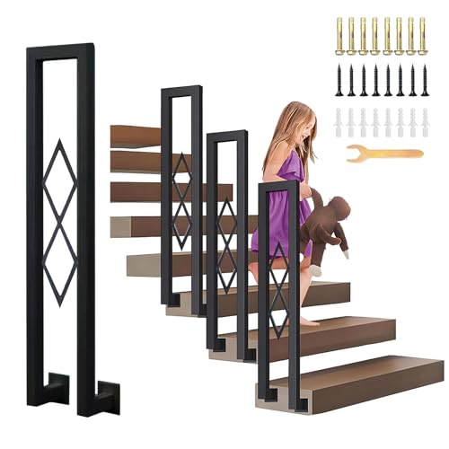 VEVOR LTFS16 Garde-Corps Rampe Main Courante en Fer Forgé Balustrade Rambarde 1 Marche Réglable 16 cm Distance Entre 34 cm Hauteur Poteaux 96 cm pour Sécurité des Escaliers Jardin Portail, Noir