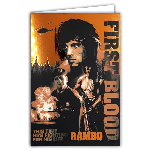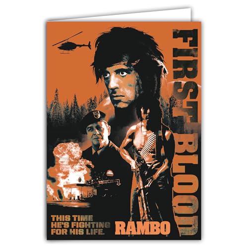 Carte RAMBO First Blood Licence Officielle Couleur Brillante This time he's fighting for his life - Carte Ouverte Blanche 23x17cm - Avec Enveloppe Blanche 12x17,5cm -Pour Anniversaire Départ Retraite