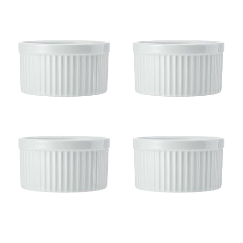 Ramequins en porcelaine blanche Lot de 4 ramequins en céramique allant au four, ramequins for crème brûlée, tasses à pudding, crème anglaise, soufflé, ramiken, sauce à tremper, petite taille(4 oz)