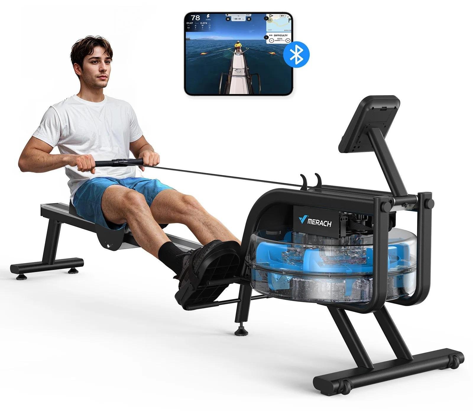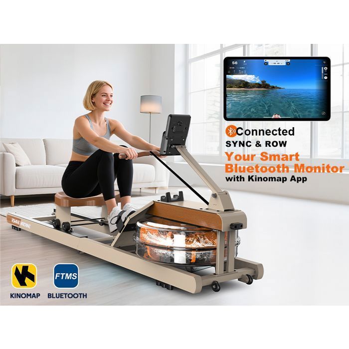Rameur à eau pliable - ADVAMSOLER - HCQ-51-A - Réservoir 15L - Bluetooth Kinomap - Bois chêne massif
