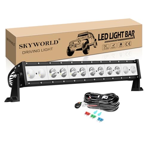 SKYWORLD 64 cm 60W Barre de LED 4x4 avec 12v Faisceau de câblage kit, Rampe LED Bar fuex Phare de Travail Barre Lumineuse pour 4x4 Offroad Véhicules Voiture Camion Tracteur Quad Bateau