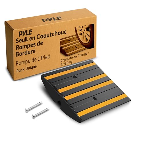 Pyle Rampe de Bordure en Caoutchouc –Rampe d’Accès Voiture Antidérapantes Profil Bas Usage Intensif 5T, Imperméables, Bandes Réfléchissantes, Fixations Incluses, Pour Garage, Trottoir, Entrée, Voiture