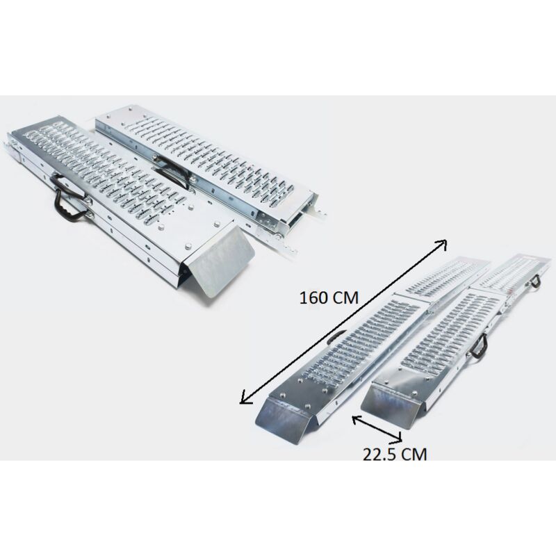 LZQ Lot de 2 rampes d'accès en acier galvanisé - 400 kg - 160 × 22,5 × 4,5 cm - Surface argentée - Rail de chargement antidérapant - Rampe de remorque, moto, quad, voiture