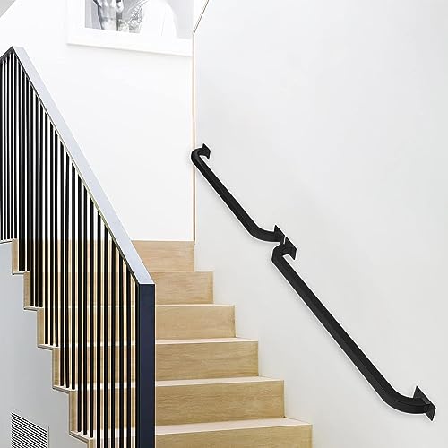 Noir Main courante pour Escalier support Kit | Fer forgé Rampe d'escalier Garde-corps l'intérieur d'extérieur Terrasses Balcons Parapet et Fenêtres | Rambarde Rails Balustrade Handicapé, 30-600CM