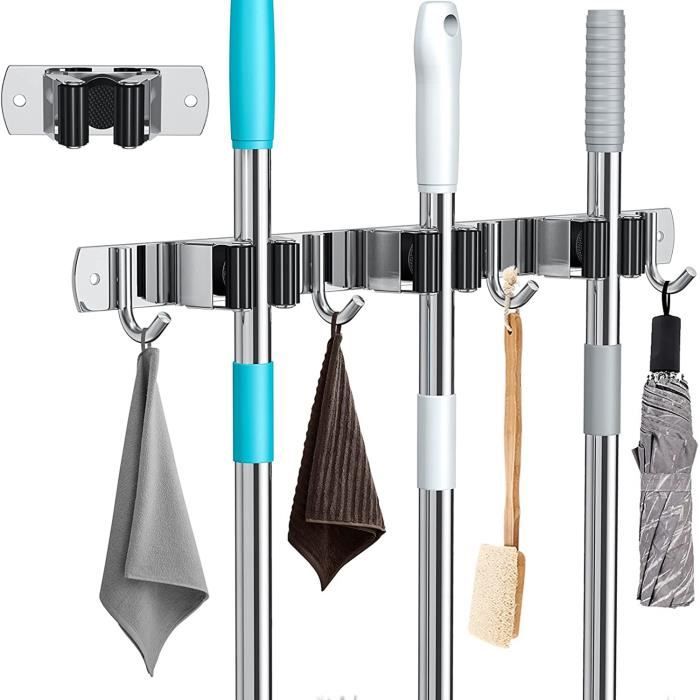 DOULEIN Accroche Balai Mural,5 Pièces Support Balais Mural en Acier Inoxydable Range Balai Organisateur Porte-Outils de Jardin Pour Salle De Bain, Cuisine, Jardin, Garage