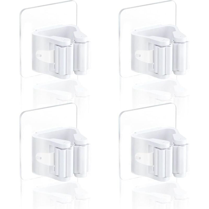 Mikinona 4 Pièces porte-balai support balais range balai accroche balais Adhésif étanche crochets adhesifs organisateur de balai vadrouille support pour vadrouille et balai blanche