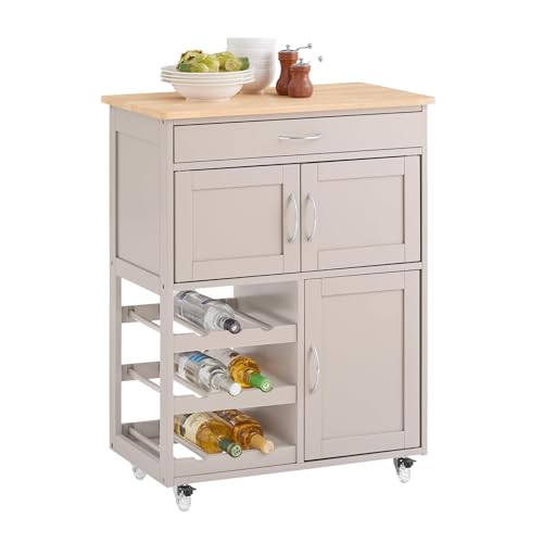 SoBuy Meuble Cuisine Rangement avec Plan de Travail, Desserte Cuisine avec roulettes, Tiroirs & Range-Bouteilles, Îlot Central Cuisine pour Salle à Manger et Extérieur Khaki 67x86x38 cm FKW45-KA