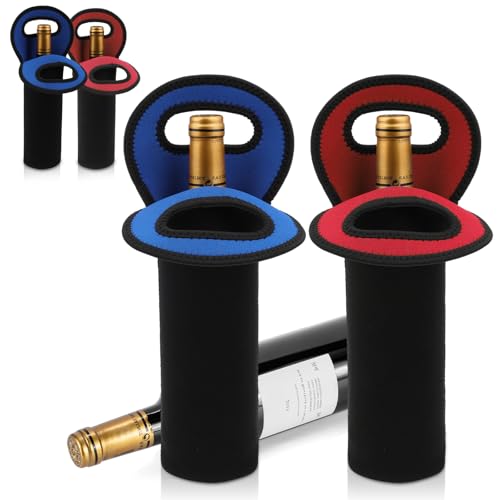Playexen 2pcs Sac à Bouteilles pour 2 Bouteilles Range Sac à Vin Sac de Rangement Réutilisable en Néoprène avec Poignée Porte Bouteilles pour Vin Champagne Boissons 37 x 13 x 12 cm(Bleu&Rouge)