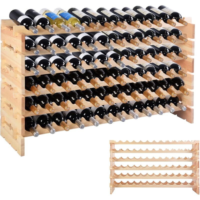 Relax4life - tagère à Vin Empilable en Pin à 6 Niveaux pour 72 Bouteilles, Range Bouteille Vin Modulable avec Conception Horizontale Porte-Bouteilles