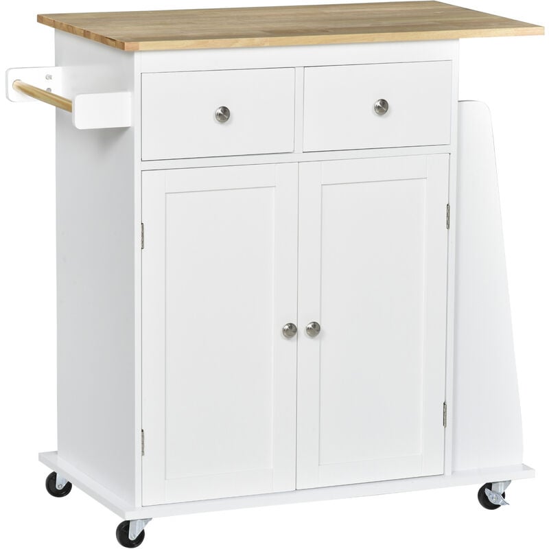 Desserte de cuisine multi rangements 2 tiroirs placard 2 portes avec étagère 3 range-bouteilles porte-torchons mdf blanc hévéa
