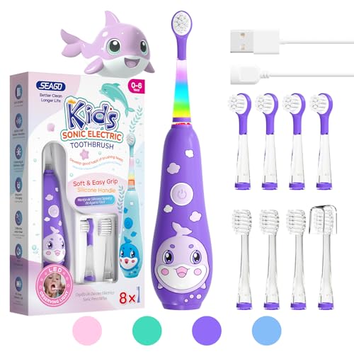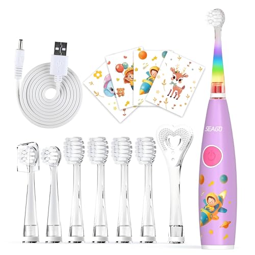 Seago recharge brosse a dent electrique enfant, brosse a dent bebe avec lumière LED 8 têtes, 60 jours d'utilisation, minuteur et étanche IPX7, pour 2 ans à 6 ans, SG2139, Violet