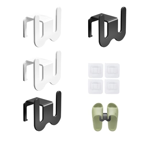 MYLERCT Support Mural pour Pantoufles, 4 Pièces, Range Chaussure Sans Perçage, Mural, Etagère à Chaussures Aluminium Spatial, Blanc et Noir, pour Salle de Bain, Salon, Chambre