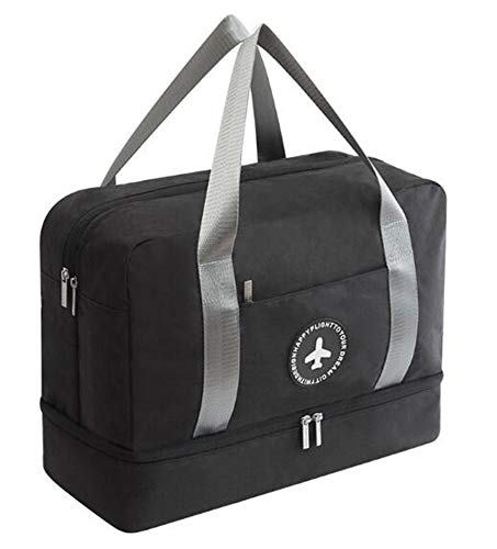 NOVAGO Sac de Voyage, Sac de Sport Pliable avec séparateur de Linge Humide et secs et Range Chaussure (Noir)