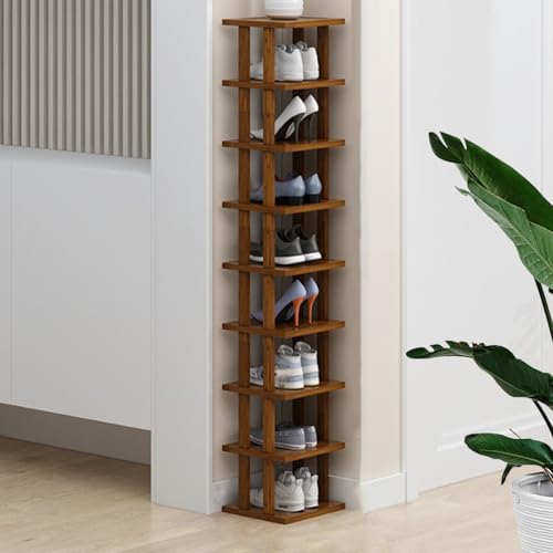 Meuble a Chaussures Exterieur Imperméable,Meuble Chaussure Bois, Range Chaussure, Étagère à Chaussures Haute et Étroite for Entrée, Dortoir, sous Le Lit,25*25*86cm (5) (Couleur bois gris foncé)