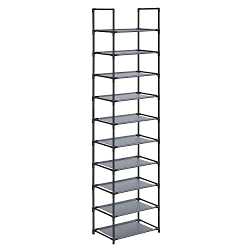Vicye Étagère à Chaussures à 10 Niveaux, Meuble Chaussure Entree pour 20 à 25 Paires de Chaussures, Haute et Ouverte, Range-Chaussure Étroit, pour Couloir, Salon, Chambre à Coucher, Gris