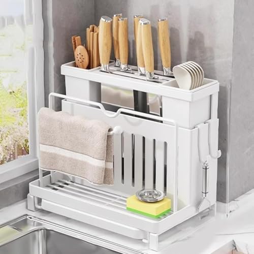 Porte-Couvercles et Organiseur de Cuisine Multifonction | Support avec Porte-Couteaux Range-Ustensiles et Bac à Égouttage | pour Planche et Cuillères Économiseur d‘Espace(White,A)