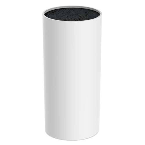 Vonsera Bloc Couteaux Cuisine, Porte Couteau Vide avec Lattes Flexibles, Universel Range Couteaux de Cuisine pour 8 Couteaux de Toutes Sortes, Blanc, 9.5 x 9.5 x 22cm