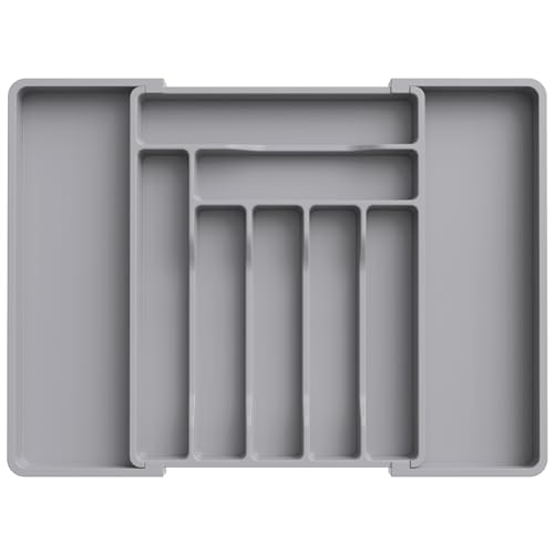 Lifewit Rangement Couvert pour Tiroir, Range-Couvert Extensible, Organisateur Couvert Cuisine, Boite Rangement Pour Cuillères, Fourchettes, Couteaux, Profondeur 31 cm, Largeur 23-37cm, Gris