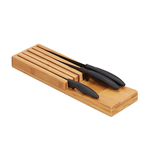 Relaxdays range couteaux de cuisine bambou, support couteaux pour 5 couteaux, bloc tiroir, 3,5 x 11 x 39 cm, nature