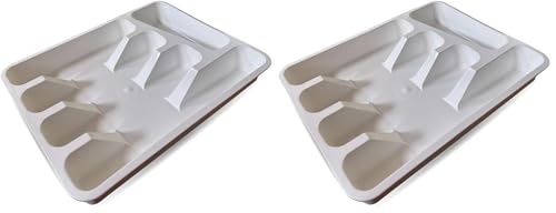 PARENCE.- Organisateur Couverts 5 Compartiments – Range-Tiroir Cuisine Plastique 33x26x5 cm – Plateau de Rangement pour Fourchettes, Couteaux, Cuillères, Blanc (Lot de 2)