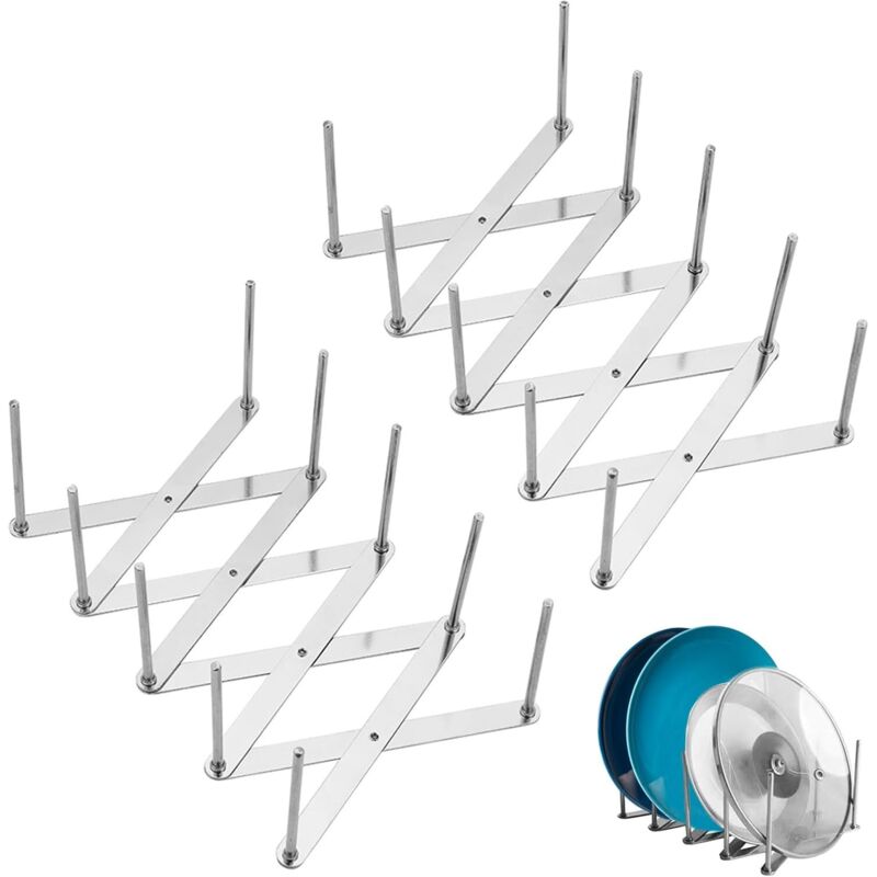 2 Pièces Range Couvercle Acier Inoxydable, Support Rangement et Organisation Cuisine Rétractable, Porte-Côtes Réglable Multifonctionnel pour Ranger Ustensile, Casseroles, Poêles, Assiettes, Livre