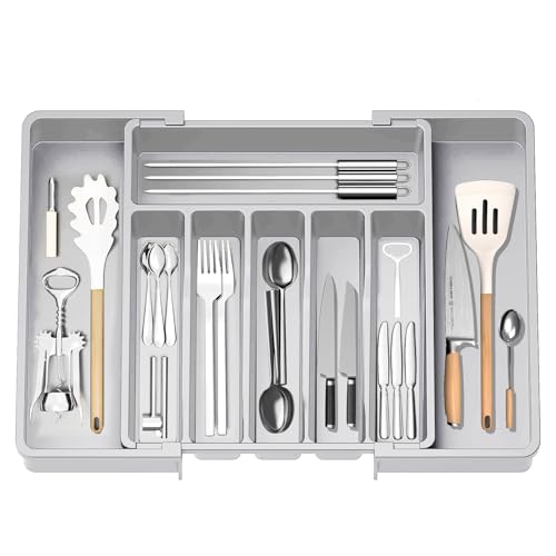 Euqvunn Range couverts pour tiroir avec 4-7 compartiments, range couverts extensible multidirectionnel – idéal pour le rangement des ustensiles et outils de cuisine dans les tiroirs