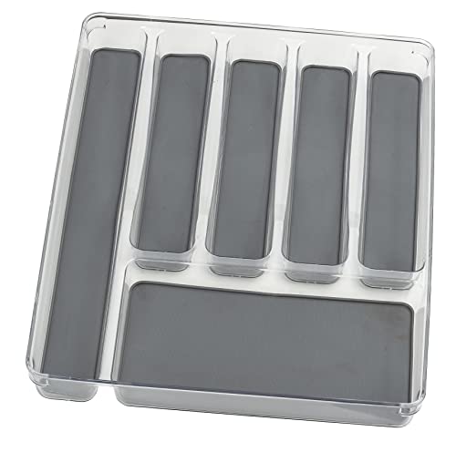 WENKO Range-Couverts avec 6 Compartiments - Insert pour Couverts, pour tiroirs, en Plastique (Pet), 32 x 4.5 x 40 cm, Bac Transparent et Fond Compartiments Gris