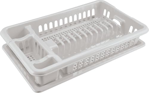 Égouttoir à vaisselle avec bac d’égouttement – 2 compartiments range-couverts – Jusqu’à 12 assiettes – 43×27×8cm – Coloris aléatoire (bleu ou gris) – Fabriqué en Italie - M home by Mazzei Mondex