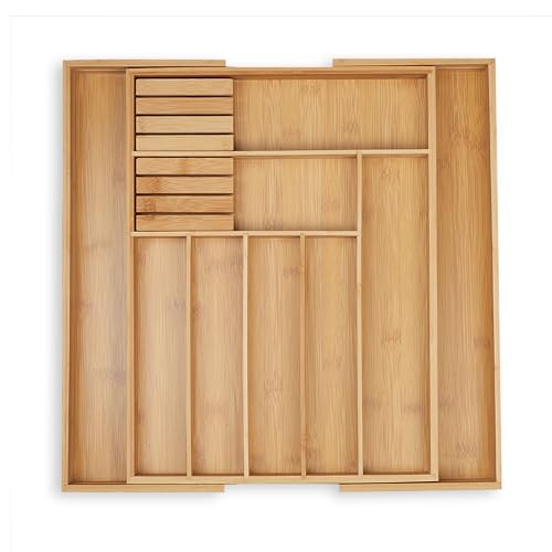 Relaxdays 10016742 Range-Couverts organiseur de Tiroir de Cuisine en bois HxlxP : 5 x 48 x 46 cm Extensible en bambou