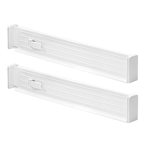 iDesign Linus organisateur de tiroir réglable, séparateur de tiroir en plastique pour la cuisine, lot de 2 range-couverts, blanc, Drawer Divider