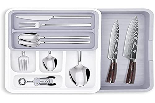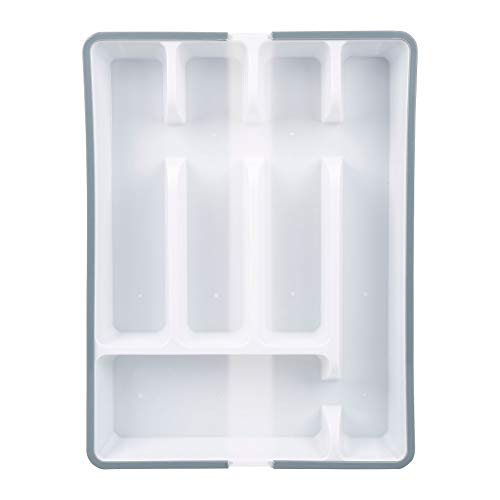 MDHAND Range-couverts extensible réglable pour tiroir de cuisine - Organiseur de tiroir de cuisine - Support pour couverts - 8 compartiments flexibles (Weiß-Grau)