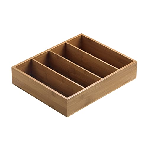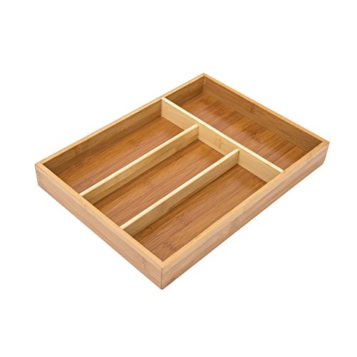 Relaxdays 10018886 Range-couverts en bambou organiseur de tiroir 4 compartiments HxlxP: 4 x 25 x 34 cm résistant durable en bois, nature