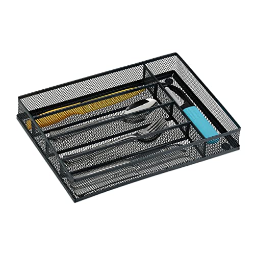 Relaxdays Range-couverts mailles acier métal boîte à couverts bac à couverts HxlxP: 5,1 x 28,6 x 40,6 cm, noir