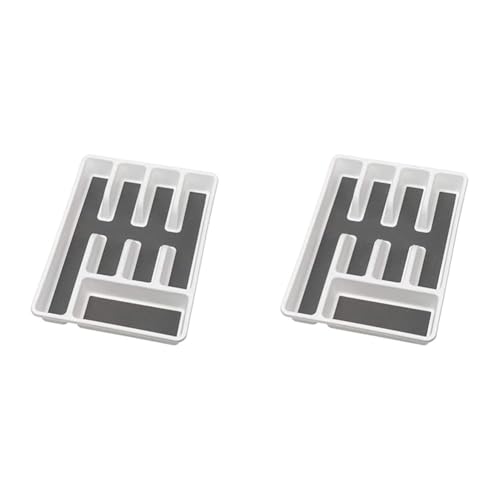 Relaxdays Range-couverts en matière plastique 6 compartiments Rangement tiroir Cuisine 5 x 32,5 x 40,5 cm, couche antidérapante & plots, blanc/ anthracite