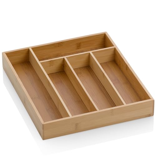 Relaxdays Range-Couverts avec 5 Compartiments en bambou HxlxP : 4 x 34 x 33,5 cm organiseur de tiroir en bois, nature