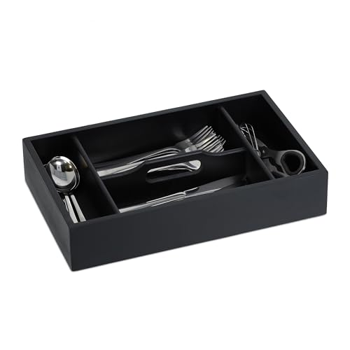 Relaxdays Range-Couverts, 4 Compartiments, avec poignée, Organiseur de tiroir, H x L x P : 7 x 37 x 23 cm, Noir