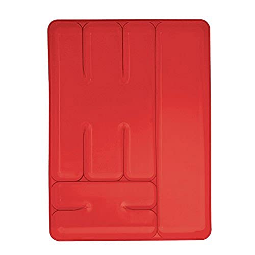 Rayen - Range-Couverts Autocollant, Adaptable à Tous les Tiroirs, Organisation Pratique, Design Moderne, Couleur Rouge