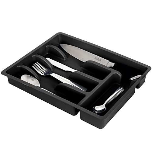 Vilde Range-couverts pour tiroir - Organiseur de cuisine avec 5 compartiments - Noir - 36 x 25,5 x 6 cm.