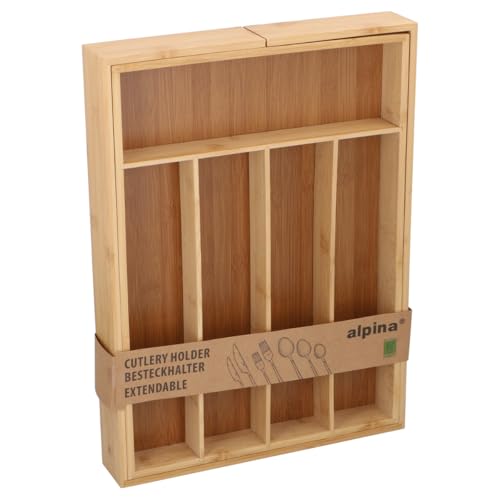 Edco Eindhoven B.V. Alpina Range-couverts extensible en bambou - Range-couverts pour tiroirs - Organisateur réglable avec compartiments - Insert de tiroir pour cuisine et bureau