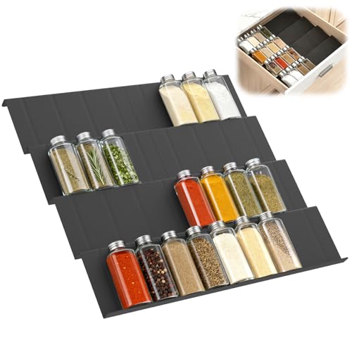 Euqvunn Pack de 8 Rrangement Epices Cuisine Tiroir, Porte Epice Extensible Réglable de 23 cm à 46 cm, Range Epices Cuisine pour plan de travail, placard, étagère