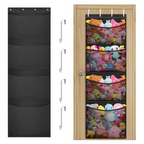 xtemtoamz Range Peluche Porte, Filet rangement Suspendu, Pliant Rangement peluche pour Jouets, Stockage D'animaux en Peluche, Support de Rangement de Porte pour Chambre D'enfant, Noir
