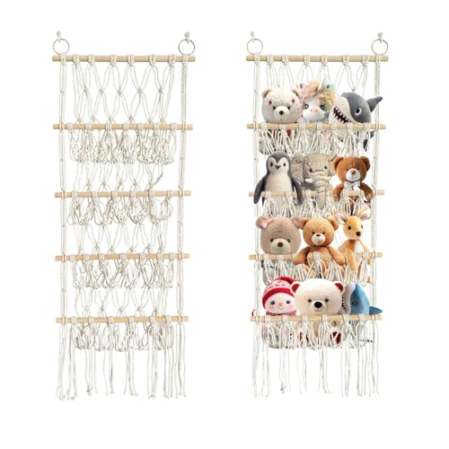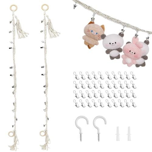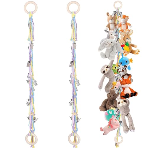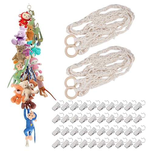 Dryxog 2 Pièces avec 20 Pinces, Range Peluche Boho, Rangement Peluche Cravates, Rangement Doudou Chaussettes, Range Doudou Grande Capacité Peut Servir à Suspendre des Peluches (Coloré)