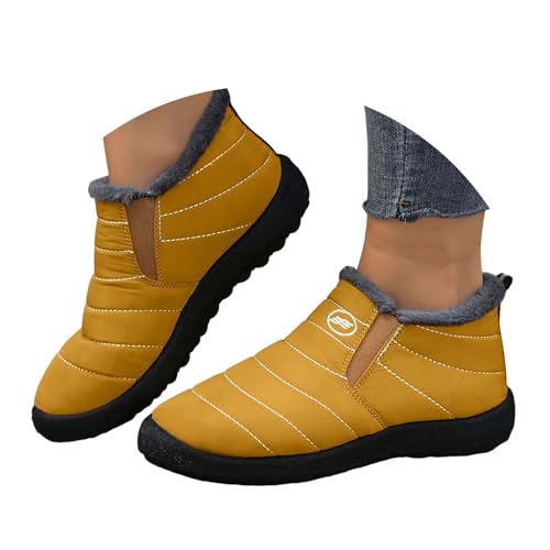Générique Bottes bout rond pour femmes, bottes en coton peluche, couleur unie, imperméables chaudes, grande taille Range Chaussures Placard Extensible (Yellow, 37)